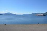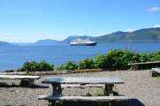 На набережной расположен бесплатный музей рыболовства. Порадовали русские названия лосесевых рыб – нерка, горбуша, чавыча, кижуч. А то тут salmon и salmon. Вон их сколько. Теперь отличаю. Недавно дома сварила вкуснющий суп из нерки, купила в «Costco» немороженную, дикую. На берегу шла какая-то развлекательная программа - аборигены исполнили какой-то незамысловатый танец, можно было посидеть у костра. Погодка была самое оно. А потом мы вернулись на корабль, оследний тендер забирал оставшихся пассажиров за полчаса до отплытия. Еще один аляскинский день закончился..