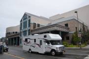 В Анкоридже оказалась подобная заморочка с машинами – все прокаты сосредоточены в аэропорту, до которого довольно прилично ехать и только на такси, и сам прокат машины на день превышает сотню баксов с налогами, то есть машинка получится золотая, и еще надо рассчитать время, когда отправляется последний шаттл в порт. Дело в том, что в порту там повышенная секьюрити – город полностью зависит от этого порта и даже небольшой перерыв в его работе может остановить жизнедеятельность всего Анкориджа. Словом, пешком туда не зайдешь, туристов возят централизованно. Нас погрузили в порту в автобусы и довезли до их «Конвеншн-центра» в даунтауне. А там уже мы были предоставлены сами себе, главное было не потеряться и успеть на последний обратный шаттл. А делать в самом городе особенно нечего – ну город и город, разве что окруженный красивыми горами (особенно, когда они в снегу). Так что в Анкоридже у нас был самый бедный по впечатлениям день, к сожалению. Большую часть этого дня мы провели в музее Аляски, неплохом довольно, кстати, но с куда большим удовольствием поездили бы там в округе по фьордам и ледникам.