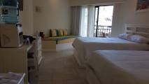 предоставляет гостям 955 номеров и первоначально назывался Gala Playacar. Около 60 км от аэропорта в Канкуне, в охраняемой курортной зоне побережья. Территория отеля огромная и поделена на три части, select club (у них свой бассейн, пляж, бар и золотые браслеты), adults only тоже со своим бассейном, пляжем и баром, браслет черный, семьи с детьми заселяются отдельно и хождение по "зонам" не приветствуется, браслет синий, у них тоже много чего есть. Наверно, есть люди, у которых подобное деление вызывает социальную несправедливость, хотя... всё решают деньги, оплати что тебе нравится и не комплексуй. Впервые увидела ключ от номера в виде браслета, на него надевается миниатюрная карта - ключи. Очень удобно. Подходя к своей двери, ты просто прикладываешь руку к замку и дверь открывается.