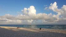 По резорту курсируют электромашины с двумя-тремя вагончиками, развозят отдыхающих. Сделаны остановки, а маршрут соединяет основные здания и пляж. Для детей несколько бассейнов с горками и без, игровая комната, небольшой зоопарк с парнокопытными, но мы весь резорт не обследовали, в основном зависали на пляже. Пляж шикарен, белый песок, изумрудное море, пальмовая посадка шириной метров 15-20 защищала от солнца в любое время дня.