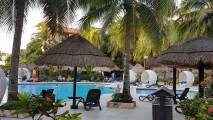 Над "нашим" бассейном (взрослая зона) стоял ор отдыхающих, большинство которых были явно крепко подшофе. Из советов, если вам не нравятся пьяные вопли американцев и канадцев, просите номер не с видом на бассейн. Нам повезло, наш балкончик утопал в джунглях, частично был виден океан и восход, а кроме птичьего пения в предрассветные часы, других звуков не слышали. Кстати на стене балкона укреплено приспособление для сушки белья, ведь всегда проблема с купальниками, а тут все предусмотрено.