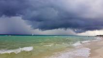 Обратите внимание на фотографию, где по краю тучи видна радуга, редкое явление природы.