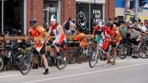 После знойного летнего дня у дверей пивного бара Devil May вечером собираются велосипедисты, регистрируются для участия в велогонке. Шумно, весело приветствуют друг друга, многие уже знакомы.