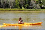 Начали интересоваться временем прохождения дистанции утятами, чтобы для них опустили барьер под мостом и всех словили. Удивили, не то слово. Узнать скорость реки решили после назначенного старта и по-простому, отправили байдарку по течению с человеком на борту. Он должен был позвонить и сообщить время следствия. И опять неудача, запутался в показаниях.