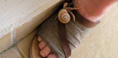 Оказывается, жизнь просто бьёт ключом, а мы ничего не знаем. Чуть дальше, по вестибюлю рак-отшельник куда-то направляется. Валера направил на него камеру, он дёрнул в мою строну. Я подставила ногу. Плевал он на препятствие, через мою ногу отправился дальше от фонарика. На несколько минут я была обута в дизайнерскую обувь с украшением из живого рака-отшельника. Рака мы не волновали, отпустили. Фонарь пустили по стенам, потолку. А там... Миниатюрный лягушонок, ящерка.