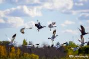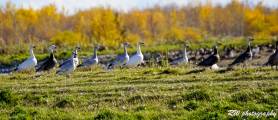 Нам посчастливилось увидеть несколько разновидностей гусей одновременно в одной стае. Они по-настоящему дикие, даже остановка автомобиля вызвала волнение, подняли гвалт и скрылись моментально. Несколько снимков удалось сделать.