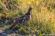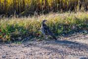 И чуть позже, уже в парковой зоне нам перешла дорогу диковинная птица. Лес густой вдоль обочин, скрылась в лесной высокой траве, кустарнике. Еще чуть дальше на обочине встретили отдаленно похожую на яркую, убежавшую в траву, птицу. Она совершенно спокойно позировала, лишь отворачивала голову. Что за птица? Были предположения: самка фазана (самцы яркие, цветные, с длинными хвостами) или куропатка. У фазанихи хвост длиннее, хотя окраска одинаковая, методом тыка пришла к заключению: мы встретили куропатку, (если что, прошу исправить).