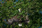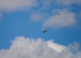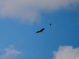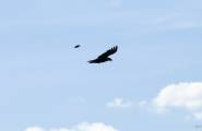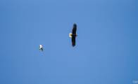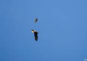 Один раз его подняли в воздух две совсем уж миниатюрные птички. Он кружил над деревьями, очевидно, там было чье-то гнездо. С криками его выгнали в небо над озером.