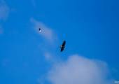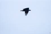 А белоголовый орел парит себе в облаках и ведать не ведает о вековых спорах о нем. Орлан стал для нас героем дня, развлекал, как умел несколько часов. Поднимался ввысь к облакам, прятался в них, летал низенько-низенько над озерной гладью, высматривая добычу. Кружил, убегая от атаки мелкой птицы. Скорее всего ей был сокол, какой именно, рассмотреть не удалось. Происходил настоящий бой в небе над озером. Мелкий нападал на крупного, в несколько раз большего и, как ни странно, большой удирал от мелочи. Мелочь поднималась выше орла и падала на него сверху. Орел переворачивался в воздухе, но во время спланировав, выходил из пике. Это были настоящие военные действия, почему-то сразу вспомнились военные фильмы о летающих бомбардировщиках. В течение нескольких часов орел удирал три раза от мелких птиц.