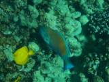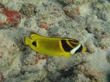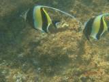 Интересная желто-черная рыбка с «парусом» - это Мавританский идол или Рогатый занкл. Плавают стайками и смотрятся очень красиво – даже снимала их на видео.