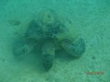 На острове Кауаи мне удалось поплавать рядом с огромной морской черепахой! Она мирно "пылесосила" песок подо мной, а я крутилась над ней с фотоаппаратом, не веря своему счастью. Нащелкала ее во всех проекциях, да еще и видео сняла. Она на меня не обращала никакого внимания, и я ей старалась не мешать.
