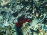 Спинорог отличается яркой окраской, которая создает ему грозный вид. Свое название рыба получила от рога, напоминающего кривую колючку. Он расположен на голове и в спокойном состоянии прижат к спине, однако когда рыбе грозит опасность, спинорог выпрямляет колючку, и хищник не может его проглотить. Местные жители считают, что хумухуму приносит счастье тому, кто ее увидит. Очень на это надеюсь, вдруг?!! Я видела их немало, но позировать они не очень любят.