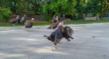 И вот теперь индюки появились на улицах Виннипега. Они прогуливаются компанией в несколько птиц и порой бывают агрессивны. Случаев нападения на человека пока не зарегистрировано, но между собой довольно часто дерутся. Такую драку мы и увидели неожиданно на проезжей части улицы в "спальном" районе. Стоял крик на всю округу, в воздухе парили перья, а индюки не унимались. Выглядело, что дрались два семейства, причем не уступая друг другу, типа наши погибают, но не сдаются.