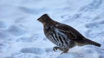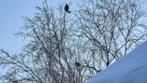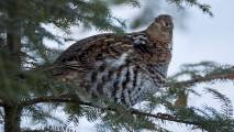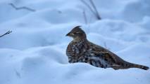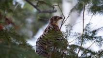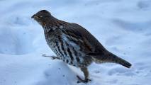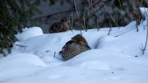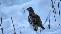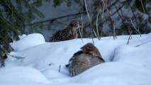Нам повезло с погодой на озере, все три дня были до минус пяти и без ветра, видимо погода и птицам позволила выйти из снега. Сначала решили, что это тетерев, но поиск в интернете определил рябчика, трибы тетеревиных, семейства фазановых отряда курообразных. В Канаде их часто называют дикими курицами, на наших картинках действительно две самки. Рябчик - самый мелкий представитель тетеревиных. И он у нас есть в альбоме Октябрьский север Манитобы.