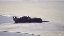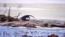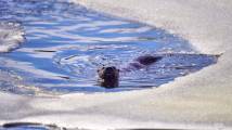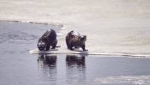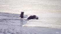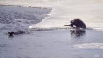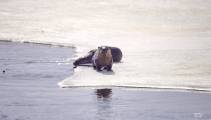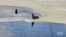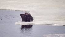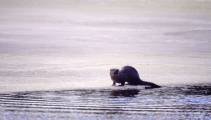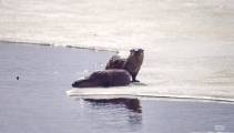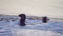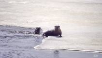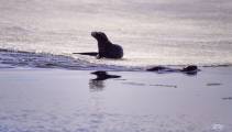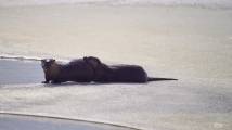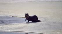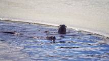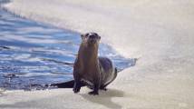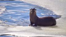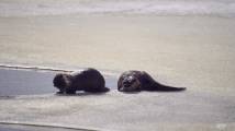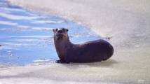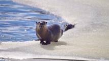 У кромки льда в воде озера замечаем движение в воде, выходим из машины, интересно же, что там. Две выдры разыграли перед нами целый спектакль. Какие же они смешные, стоящие на льду на своих коротких кривых лапках. Они катались по льду на животах, переворачивались на спины, лакомились кусочками льда, мы даже хруст слышали, обнимались, позировали, виртуозно играли в "догонялки" в воде, но всегда держали нас в поле своего зрения. Море удовольствия.