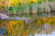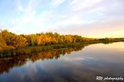 На дворе мягкая осень, краски пока только начинают меняться. Остановились у речушки Brokenhead, она течет в озеро Виннипег. Дело было вечером, в закат. Вода в реке не двигалась, лишь отражала цветные берега и облака.