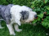 До него у нас жил 13 лет Боб, тоже ел фрукты-овощи, мог миниатюрные помидорки сам сорвать, огурцы трескал с грядки, запивал дождевой водицей из бочки. Понимаю, что им нужны витамины и пусть едят на здоровье, но до чего же непривычно наблюдать сие действо. За зиму забывается и вот опять сезон урожая наступил. Жак просится на улицу и бегом к кусту с ежевикой, она сейчас спеет. Красную ягоду не берет, только спелую, черную. Если ягодки упадут на траву, всё аккуратно соберёт. Скоро виноград поспеет, будет им лакомиться. Какие они замечательные, эти пёсики - садоводики.