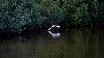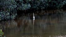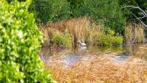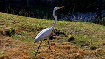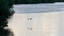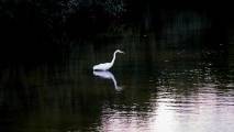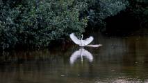 большая белая цапля. Первые дни мы наблюдали за ней на воде, за её рыбалкой, взлётами и посадкой на воду. Занимательное зрелище.