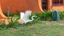 Особенно нравится кадр, где цапля уселась на арку здания. Цапли относятся к семейству аистовых, но селятся на болотах.
