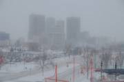 Сегодняшние фотографии метели. Несколько снимков около периметра и в центре города. Конечно, в городе метет гораздо меньше. "Это в городе тепло и сыро, а за городом зима, зима, зима." Конечно, в городе не тепло пока,