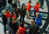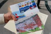 Молодой человек у стенда с маркой - фотограф Dan Harper, чей снимок лег в основу марки. Было интересно наблюдать, как люди, участники флага, выискивали себя на марке и как радовались, найдя. Кроме футболки, каждый получил коллекционный набор всех новых марок и почтовую открытку с флагом.