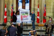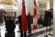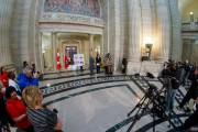в числе которых и был наш летний флаг. Сегодня в провинциальном парламенте состоялась торжественная церемония выпуска марки в "свет". Речи держали премьер провинции Greg Selinger, МР Steven Fletcher и директор BIZ Stefano Grande.