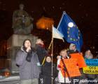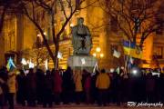 у подножия памятника звучали призывы поддержки за европейскую Украину и угрозы в адрес, стоящих поперек пути.  Свою гражданскую позицию пришли продемонстрировать около ста человек. Цель акции протеста: продолжить евроинтеграционный курс развития Украины.