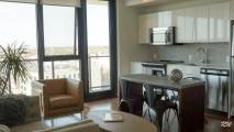 Всё соответствует запланированному проекту, есть и раздвижные стены, и окна от пола до потолка, паркетный пол, открытые дизайнерские кухни с приборами из нержавеющей стали, зона отдыха на крыше для всех жильцов, кинотеатр с шикарными мягкими креслами, спортзал. Мы не попали только в кинотеатр, там шел фильм. Много квартир уже заселено, а сегодня была распродажа, первые пять покупателей получили скидку на 35 тысяч долларов от общей стоимости квартиры.