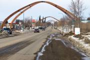 Нас поселили в замечательную гостиницу Russell Inn , (спасибо Roz за гостеприимство), где есть и бассейн с горками, и горячая ванна (hot tub) внутри здания и на улице, сауна, спортзал, ресторан. Есть номера двухкомнатные с частными уличными ваннами. Мы приехали в субботу вечером, гостиница гудела, казалось, все местные фермеры сьехались повеселиться. Бассейн полон ребятни, ванна на улице не пустовала ни минуты, почти все столики в ресторане заняты. Жизнь кипела. Утром все повторилось. Набултыхавшись вдоволь в воде под ярким манитобским зимним солнцем, мы двинулись в cторону парка Асессиппи по хайвею №83, часть которого провалилась в прошлом году. До соревнований полно времени и мы навестили исторические элеваторы Инглисса.