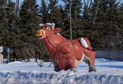 Статуя Красного Быка встречает на вьезде. Небольшой городок, расположенный в 15 км на восток от границы со Саскачеваном. Меньше 2 тысяч человек проживает в Расселе. Европейцы появились в этом местечке прерий в конце 19 века.