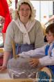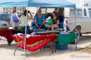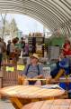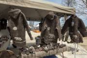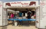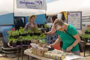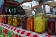 Сегодня день открытия рынка. С 5:30 утра начинают подъезжать первые фермеры, готовиться к встрече с покупателями. Овощей, фруктов пока нет на рынке, не сезон, привезли немного из теплиц и моментально продали. Кроме урожая из огорода и сада, продается выпечка без вредных добавок, различные косметические: кремы, настои из трав, самоваренное мыло, ароматизаторы воздуха. Товары ручной работы из дерева, шерсти и другой пряжи, картины. Очень понравилась одежда из шерсти местных овец, войлочная. Нас пригласили на ферму, обещали показать и рассказать весь процесс производства войлока. Одежда без швов, что-то напоминает самоваляные валенки, уже хочу такое пальто. С задумкой, красочно изготовлены домики для птичек из тыкв. Много самодельной бижутерии. Даже костюмированные пионеры Манитобы демонстрируют свое мастерство на прялке, строгание фигурок из дерева, изготовление пряжи. Ферма бизонов предлагала попробовать деревенские колбаски трех сортов, тут же приготовленные. Атмосфера праздника. Можно и позавтракать здесь же, кухни на колесах готовят всевозможные блюда. Деревянные столы со скамейками тоже имеются. Живые, срезанные цветы - замечательное добавление к завершению покупок. Будут радовать вас всю неделю до следующей субботы.