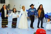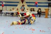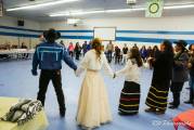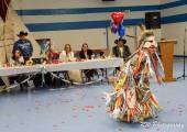 Церемония проходила в клубе, на стенах нарисованы эмблемы, символы племени, водрузили вигвам, затем стол виновников торжества и остальные столы по периметру, центр зала свободный. Свадьба была не чисто индейской, микс традиционной и Дакота свадьба. Всё очень органично, со смыслом, душевно. Гражданская церемония бракосочетания замечательно слилась с древним обычаем закрепления двух сердец по обычаю людей Дакота.