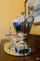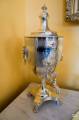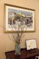 Удивила ваза с веточками вербы, ведь через два дня Православное Вербное Воскресенье, как удивили и серебряные самовары. Стояла ваза под картиной, где изображена деревянная деревня с играющими детьми на морозе и на секунды вспомнилась дача из детских зимних каникул в деревеньке Южного Урала. Как всё переплетено в этой жизни.