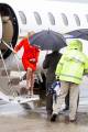 Перед прибытием самолета небо покрылось уникальными облачками-мешочками (мammatus clouds), которые вылили всё содержимое на ожидающих королевскую чету, журналистов и репортеров.