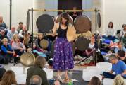 Звучат хрустальные поющие чаши, гонги, бант-сури-флейта, пан-барабан и другие мистические звуки. Мы бродили, сделав несколько снимков мероприятия, по всему зданию и ото всюду слышалась звуки обряда.