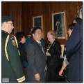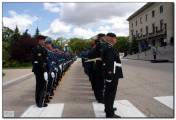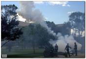 Сначала вышли судьи, затем все присутствующие и лестница опустела, все ждут. Затем кто-то наверху сделал отмашку рукой и фигура Филипа с женой свернула влево, ушли в лифт. Ажиотаж, представители СМИ нервничают, побежали новое место отвоевывать, уже под солнцем на уличной лестнице. Филип Ли успешно водрузился на подиуме и началась демонстрация военного мастерства и почести. Опять бабахали орудия, ляскали оружием, звучал оркестр.