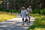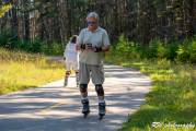 В наступившем веке появилось в обиходе словечко селфи. С распространением встроенных фотокамер в различные мобильные устройства, множества моделей цифровых камер, люди поступают просто - на расстоянии вытянутой руки фотографируют себя. Получается своеобразный ракурс снятой фоты. На камерах встроены и таймеры, которым мы никогда не пользовались и вот решили попробовать на себе. Камера устанавливается на штативе, фокусируется на будущее место фотографирования, подключается к мобильнику. Ты занимаешь нужное место и оперируешь камерой через мобильник. Мы, конечно, усложнили себе задачу роликами, да и дорожку выбрали с уклоном, на ней стоять спокойно не получалось, тебя всегда куда-то катило. Удивительно-солнечный, теплый сентябрьский день, любимый парк Бёрдсхилл, ролики, камеры и мы. Погода с утра обрадовала, решили закрыть роликовый сезон 2014, потом появилась идея с экспериментом.