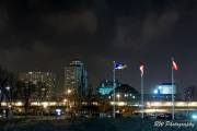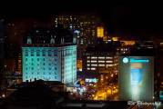 Раз мы оказались на верхатуре в центре города, воспользуемся случаем, запечатлеем ночной любимый город. Фотография через стекло, ночью, когда стекла превращаются в зеркала, повсюду сияют огни и тоже дают отражение.