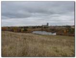 Мы прихватили с собой фотокамеру, запечатлеть первые встречи нашего любимца с незнакомыми хвостатыми представителями. Погода стояла безветренная, достаточно теплая, по небу плыли серые облака, полное соответствие осени. Парк огромных размеров, проложены дорожки на больших расстояниях друг от друга. Мы выбрали безлюдную и отправились в путь, освободив Жака от поводка. Впереди показалась большая собака, волнительно, как будет реагировать Жак, как встречный пес, не напугает ли. Все обошлось замечательно, собаки поиграли, наш вернулся к нам по команде, зная, что что-то получит вкусненькое. А вокруг красота. Даунтаун виднеется среди туч. Помните, как в кинематографе показывают Лос-Вегас в степи, наш центр выглядит, примерно, также. Неожиданно перед нами появились водоемы, обрамленные осенними теплыми красками с плавающими утками. Прогулка удалась: Жак оказался на высоте, необходимые светские манеры продемонстрировал, что для нас, как бальзам в душу. Мы прогулялись, наслаждаясь красотами осени, сделали несколько снимков, с удовольствием делимся с вами, дорогие читатели. В фотоальбоме первые три снимка из парка, что за нашим забором.