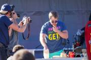 На разогреве выступили четыре достопочтимых господина, за три минуты уничтожили 8 хотдогов. Чемпион же должен был побить четверых и сьесть больше 8 хотдогов за три минуты. И началось... Зрелище не для слабонервных. Толпа только вопила: ююююю. Я первый раз такое наблюдала. Быстро отделялись сосиски от булок, булки мочились в графине с водой и проскальзывали во внутрь спортсмена вместе с сосисками. Joey, конечно, сделал четырех мэнов дважды, проглотил 16 булок и 16 сосисок. После этого еще и выступил, рассказав, что хотдог, один из самых трудных видов пищи на съедание по времени.