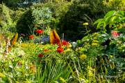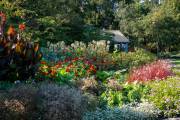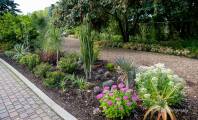 И как полагается, есть и экзотический уголок в саду - клумба с кактусами. Весной сад засаживается тюльпанами, коллекция сортов которых тоже увеличиваются год от года. Опять же в тему жанра, в саду стоит маленький деревенский домик в укромном местечке. Стилизованный сарай для садового инструмента, Crofter's Cottage, крыша сделана из сена Новой Шотландии и местного камыша. Женихи и невесты любят сфотографироваться на память на фоне домика. Любой английский сад знаменит сюрпризами. Фонтан, как правило, располагается в центре, от которого идут дорожки в разные стороны, так и в виннипежском саду в центре находится небольшой фонтан, в котором ежегодно ставится цветочная композиция. На центральной аллее сада гостей встречает статуя мальчика.