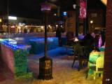 завсегдатай Darren Slatecki решили, разнообразить, украсить нашу жизнь, добавив красок, музыки, света в зимний ночной город. Идея пришла Даррену, балкон, не используемый зимой, преобразить. По периметру летней площадки сделаны из льда огорождение, в виде крепостной стены, внутри ледяные столы с углублением для фужеров. Все постройки покрашены яркими красками, работает светомузыка. В центре горит настоящий огонь, вокруг которого расположились посетители. Адрес ресторана 681 Коридон.