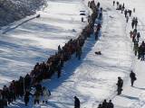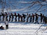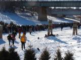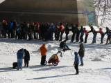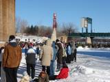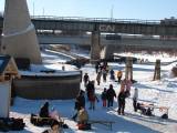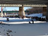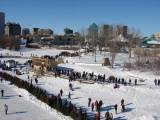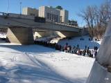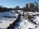 Предыдущий рекорд сделали жители города Мехико, их было 225 человек и они прокатились не разрывая цепи 3 минуты. Виннипежцев собралось 1438 человек, зарегистрированных для участия, но прокатились большее количество людей и продержались 5 минут. Подождем официальных данных. А пока предлагаю вам нашу съемку и фотографии рекорда. Предыстория следующая, обыкновенный виннипежец Дин Кашеланюк выступил с предложением на канадском общественном форуме побить рекорд г. Мехико пару месяцев назад, все форумчане его поддержали. Связался с администрацией Форкса, с местным средствами массовой информации. Тут, как нельзя кстати, обьявили первый длинный выходной февраля. Благодаря энтузиастам, в Виннипеге состоялся мировой рекорд.