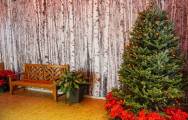 И еще один волшебный штрих композиции - на дальней стене натянуто полотно с северным сиянием, а все елочки сияют миниатюрными лампочками.
