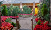 Цветочная композация Home for the Holidays представлена избранными растениями: величественная сосна острова Норфолк (Norfolk), голубой итальянский кипарис Нейлор, карликовая ель из Альберты, плющ и бостонский папоротник. Свеже-срезанные ветки Фрейзера и бальзамовой пихты добавляют бодрящего аромата в воздух. Пуансеттия или молочай красивейший родом из тропиков Мексики и Центральной Америки - символ Рождества в Северной Америке.