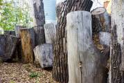 Полюбуйтесь забором из могучих пней, арт инсталляция - не меньше. Среди них можно бесконечно гулять, что мы и сделали, встретили закат среди диковинных пней и тополей. А мне вспомнился горьковатый запах клейких тополиных почек из детства и ворохи пуха по весне. Вдоль нашей улицы росли огромные тополя, ветками соединяющиеся сверху, образуя зеленый туннель на весь квартал, где в самый жаркий день стояла прохлада.