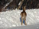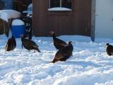 Приятно хрустел снег под подошвами. Лыжники, любители снегоходов давно открыли зимний сезон. Детвора, да и взрослые вместе с ней, катались на санках с гор. Любители верховой езды бороздили снежные покровы на лошадях. Желающие прокатиться в санях, запряженных удалой тройкой с бубеньчиками и попонах, по лесной просеке тоже могли себя побаловать. В общем, в парке было достаточно занятий. Мы просто побродили с фотоаппаратом в этот раз без лыж. Второй раз за свою канадскую жизнь увидели индюков на деревьях. Картина довольно прикольная. Одна индейка повисла на ветках, крылья неестественно изогнулись, могла шевелить лишь шеей. мы уж грешным делом подумали, что она уже не с нами. Но тут подлетела другая птица и начала ее щипать, клювать во все места. Застрявшая в ветках, видимо разозлилась и смогла взлететь и пересеть на другую ветку в нормальном положении. Вот вам на лицо и взаимовыручка. Сделали несколько снимков. Рядом с деревьями заметили домашних кроликов, прыгающих на свободе, лошадей в загонах, ну и конечно, оленей. Хочу вам рассказать немного об индюках. Родиной индюков является Северная Америка. Их одомашнили около 1000 лет назад. В Европу, а точнее в Испанию, они попали только в XVI в., после четырех плаваний Христофора Колумба. Колумб, подплывая к берегам Америки, был уверен, что приплыл в Индию. Возможно поэтому, в русском языке эта американская птица называется соответственно тому событию - индейка или индюк. По-немецки индюк - это puten, в английском - turkey, а в литовском - kalakutas. Индюки - это красивые, величественные птицы, любящие пространство и свободу. Самцы всегда тяжелее индюшек на ок. 30%. На 16 неделе жизни масса индюшки увеличивается примерно в 170 раз, а индюков-самцов - более, чем в 200 раз. Если бы скорость роста человека была подобной средней скорости роста индюшки и индюка, то на 16 неделе жизни человек весил бы около 700 кг. Они могут бежать со скоростью 50 км/ч на расстояние 1,5 км. Дикие птицы могут летать на небольшие расстояния развивая скорость до 55 миль в час. Спят индюки на деревьях. Имеют отличное дальнозоркое зрение, но не очень видят вблизи. В возрасте около 8-9 месяцев молодые самцы внезапно оставляют своих матерей и сестер, и объединяются в братства. Братства индюков объединяются в более крупные группы. Во время битв заново устанавливается общественный статус отдельных молодых особей. Битва самцов начинается с хлопков крыльями, ударов шпорами и клювом в голову и шею. Если побежденный противник не имеет возможности побега - он погибает, либо в знак капитуляции ложится перед победителем на живот, раскладывая на земле голову и шею. Победитель убивает его ударами в хребет, но иногда оставляет ему жизнь, т.к. будет нужен ему в качестве "брата по оружию" и статиста на току. Битвы длятся так долго, пока не установится бесспорная иерархия от наиважнейшего до самого последнего индюка. В настоящее время индюки живут во всех штатах США и провинциях Канады, кроме северных территорий и Аляски.Индюки относятся к подсемейству фазановых, к отряду курообразных. Видимо не зря индюшка заняла основное место на праздничном столе жителей Северной Америки. Как говорят факты в день Благодарения сьедается 45млн.индюшек, на Рождество - 22млн., на Пасху 16млн..
