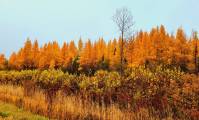 Лиственница (Larix) — лиственный представитель семейства сосновых, и незадолго до того, как осенью она сбрасывает хвою, дерево желтеет. Её родные леса охватывают Канаду, Россию и Скандинавию, где пространство не является проблемой, лиственница возвышается над всеми остальными деревьями. В Канаде дерево называют тамарак - священное дерево индейцев Америки.