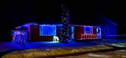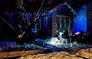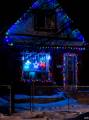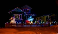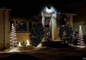 Мне понравился небольшой домик, украшенный стильно, с любовью и вкусом (на мой взгляд), где все огоньки белые и по одной спиралевидной елочки с двух сторон.