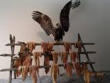 Кроме того, там же находится и картинная галерея, в которой представлены работы местных художников. Например, некий художник изобразил самую высокую точку Аляски - гору МакКинли в национальном парке Денали – туда надо бы как-то добраться, но от побережья этот парк довольно далеко, надо брать какой-то комбинационный тур с континентальной частью Аляски или набраться смелости и поехать на Аляску на собственной машине. Еще там щедро представлена местная морская фауна. Ее можно даже потрогать руками – еще один довод в пользу экономии на снорклинг-туре. Местная разновидность гризли – Alaskan Brown Bear. Такой одним когтем легко снимает скальп с человека не хуже вождя краснокожих. А на вид вполне доброжелательный мишка. Еще один хозяин здешних мест – белоголовый орлан. На одной их моих фоток показано, как вялится лосось или мясо – основная еда аборигенов.